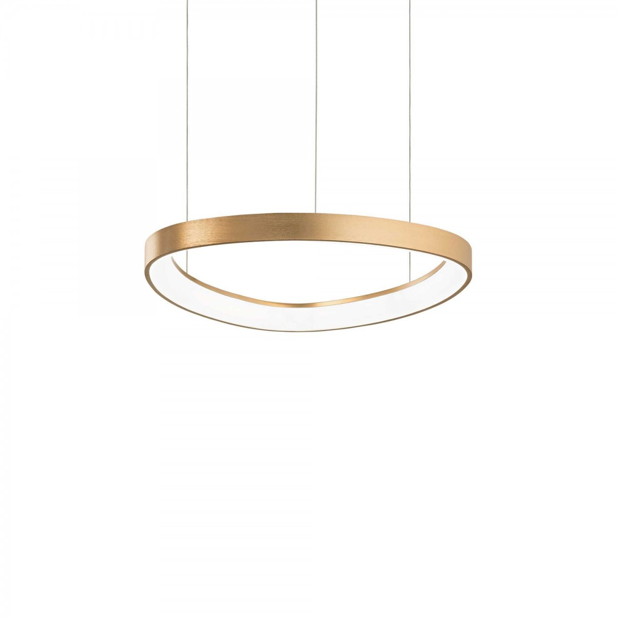Die goldfarbene Konstruktion in Form eines abgerundeten Dreiecks enthält eine integrierte LED-Quelle. Der Kronleuchter eignet sich perfekt für einen