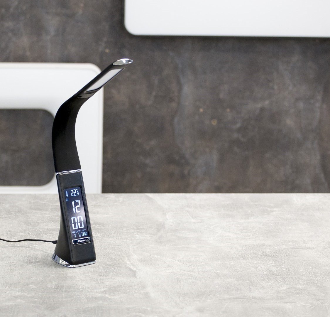 Immax 08947L LED Tischleuchte mit Display Leather 1x7W | 5000-6000K - dimmbar, Kunstleder