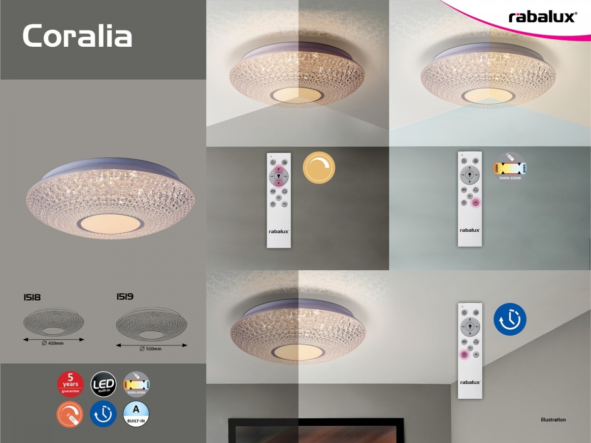 LED Deckenleuchte Rabalux in der Farbe transparent / weiß / chrom eignet sich besonders für Räume mit niedrigere Decken, wo die hängenden Kronleuchter übernommen haben. Die LED-Technologie ist die Beleuchtung der Zukunft, denn bei der Herstellung und dem Betrieb dieser Lampen wird auf Ökologie geachtet. Die Decke hat einen sehr geringen Stromverbrauch, sodass Ihre Stromrechnung nicht erhöht wird. Die Lichtquelle hat eine um ein Vielfaches längere Lebensdauer als andere Leuchtmittel, somit tragen Sie zum Schutz der Umwelt bei, indem Sie sie nicht mit unnötigem Abfall belasten.