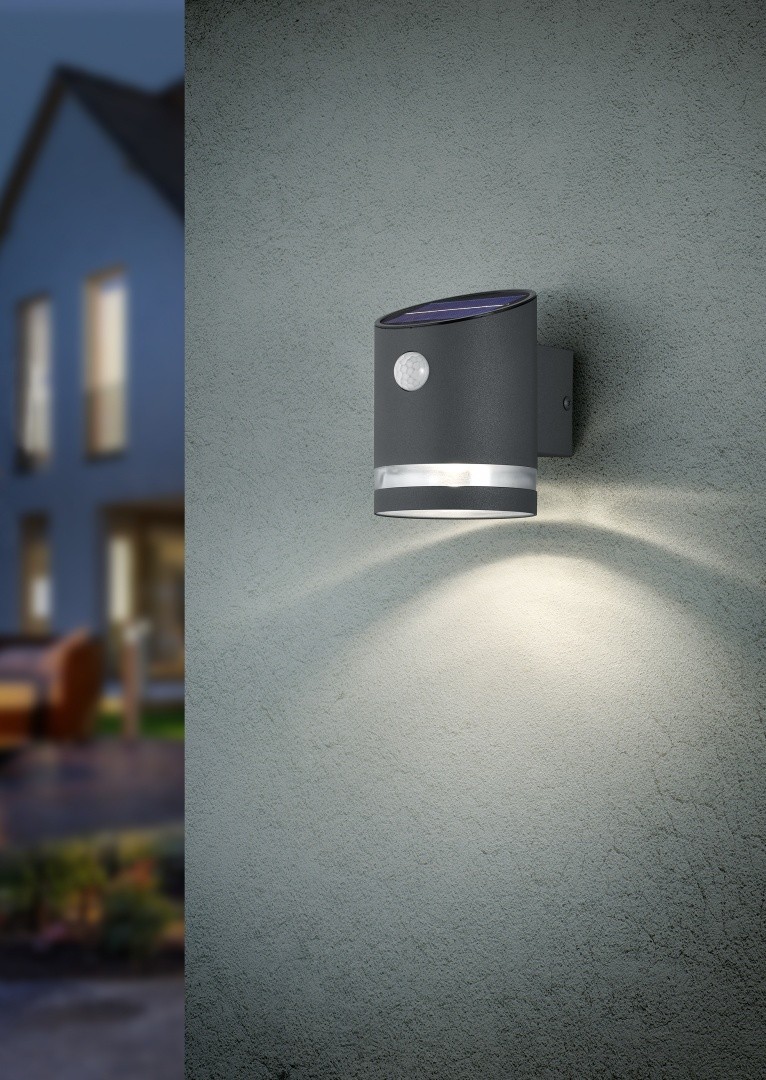 TRIO R22231142 LED Solar-Gartenwandleuchte Salta 1x3W | 3000K | IP44 - mit Bewegungssensor