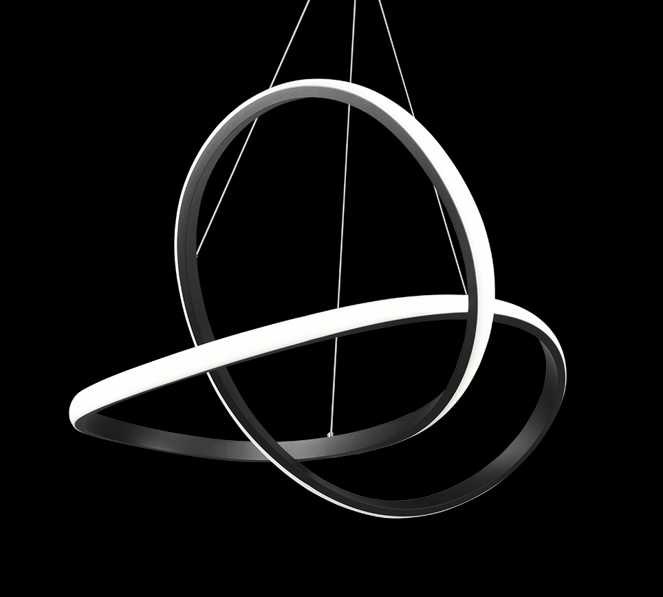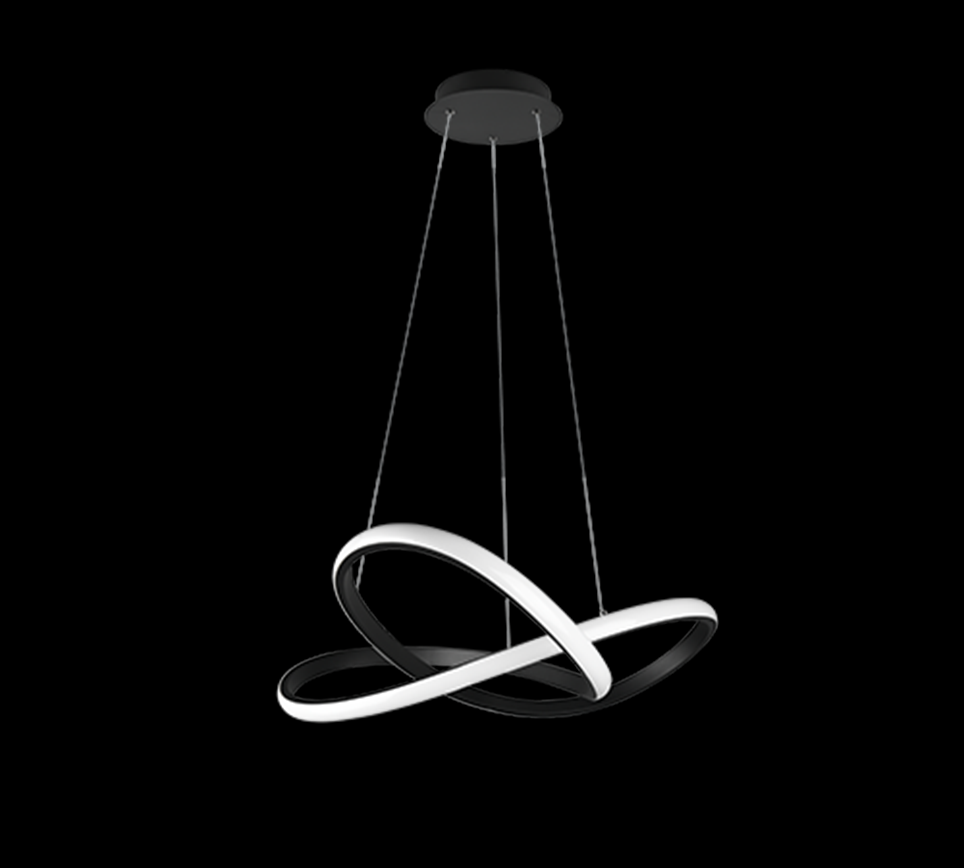 Diese hängende Deckenleuchte COURSE kann Ihnen leicht den Kopf verdrehen. Es ist eine Designleuchte, deren Metallkonstruktion in Schwarz filigrane Windungen erzeugt, deren Licht sich mit wenigen Handgriffen dimmen lässt. Sie können die Atmosphäre im Raum genau nach Ihren Vorstellungen gestalten. Er misst 1500 mm in der Höhe und hat einen Durchmesser von 600 mm. Diese Beleuchtung kann zum Beispiel Ihr Wohnzimmer oder andere geräumige Räume schmücken.