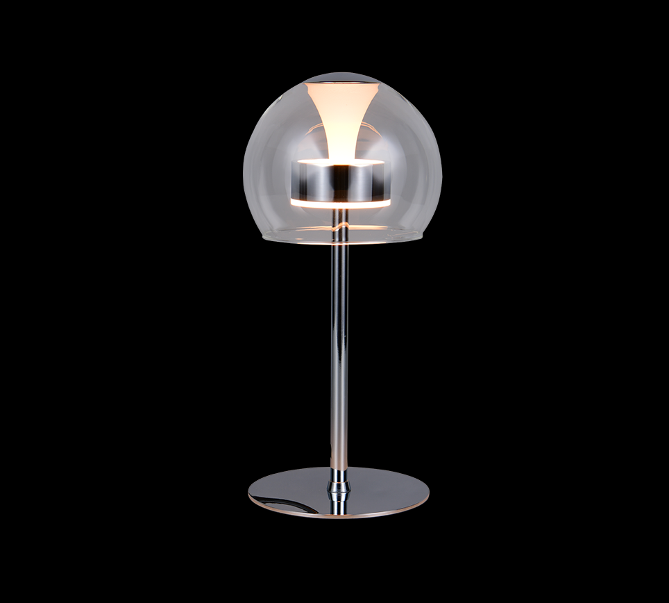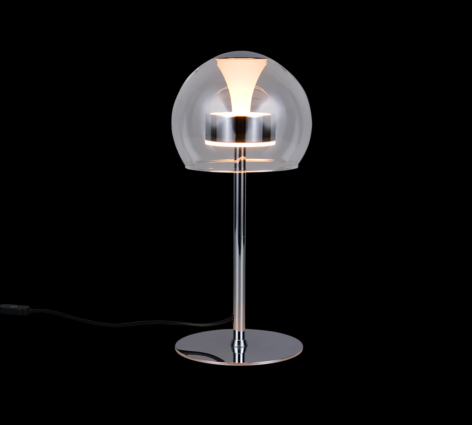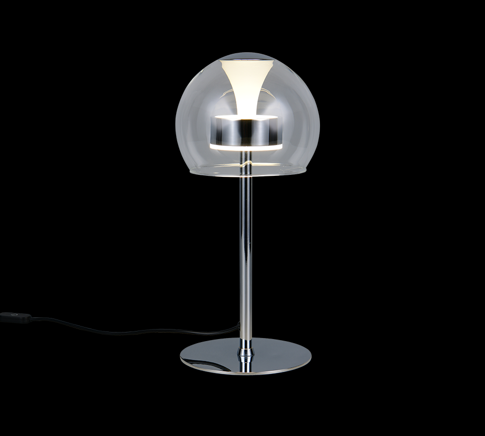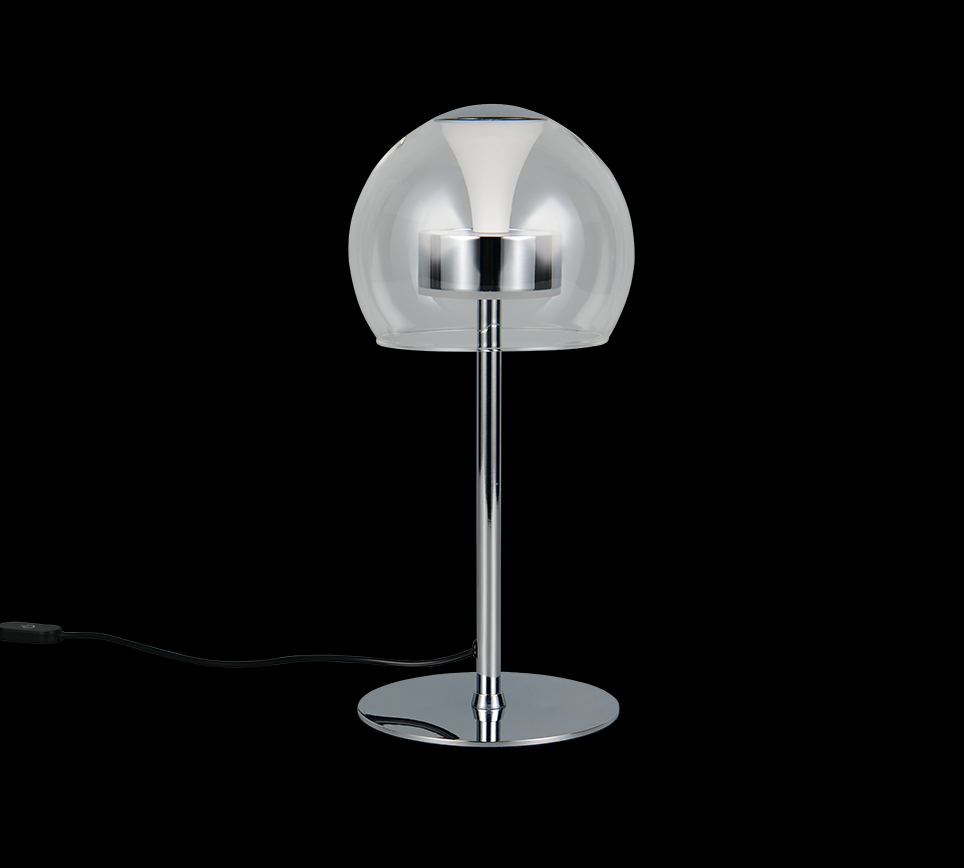 Trio T531610106 LED Tischlampe FLYNT | 8W integrierte LED-Quelle | 1x880lm | 2300+3000+4000K | mit Schalter | Dimmer | chrom | klar