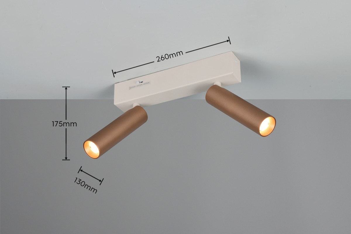Trio T849210265 LED Spot-Deckenleuchte AMBALA | 5W integrierte LED-Quelle | 2x500lm | 2300+3000+4000K | braun